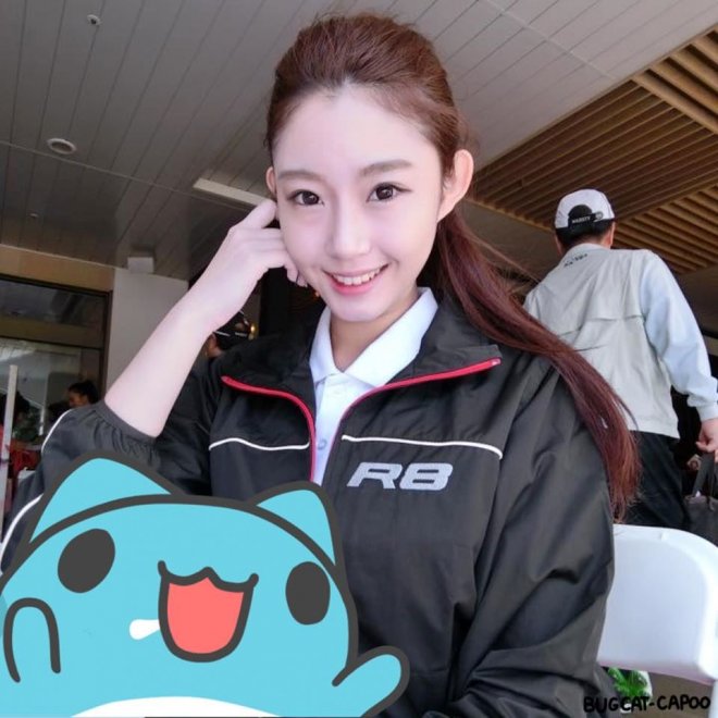 像是~汽配展、龍潭賽車場、大鵬灣……都有她這位高挑火辣又清新的車模身影。