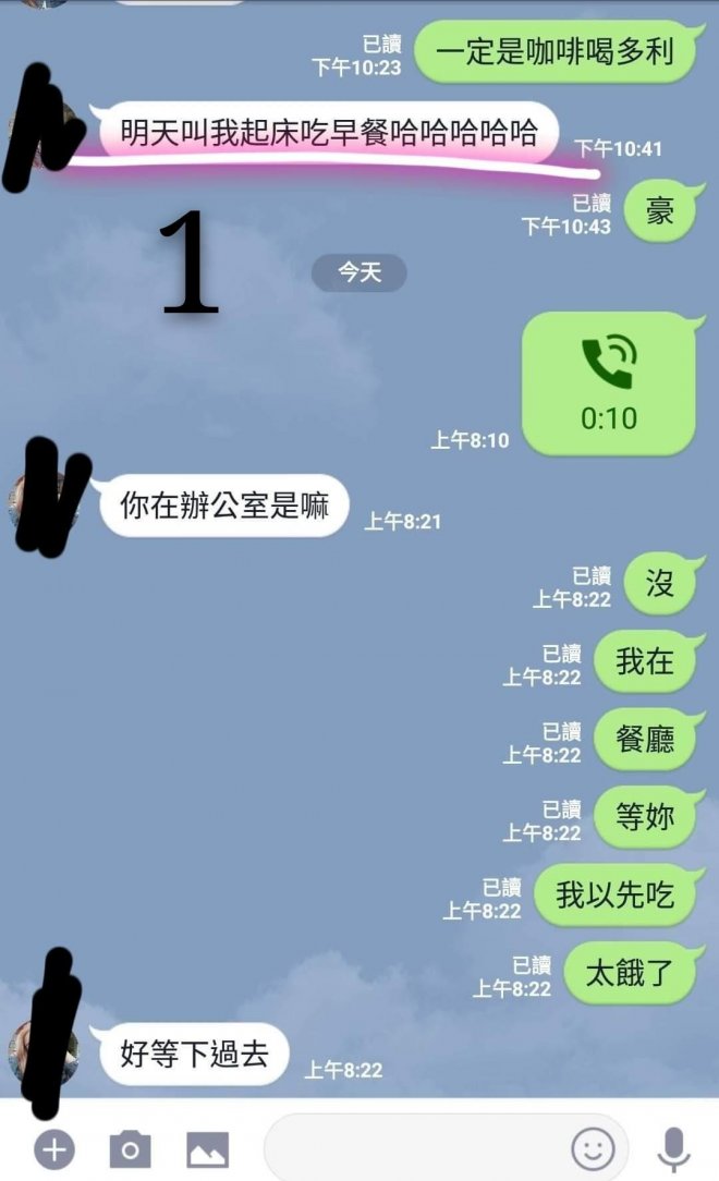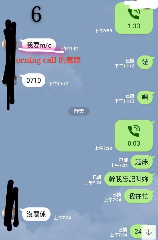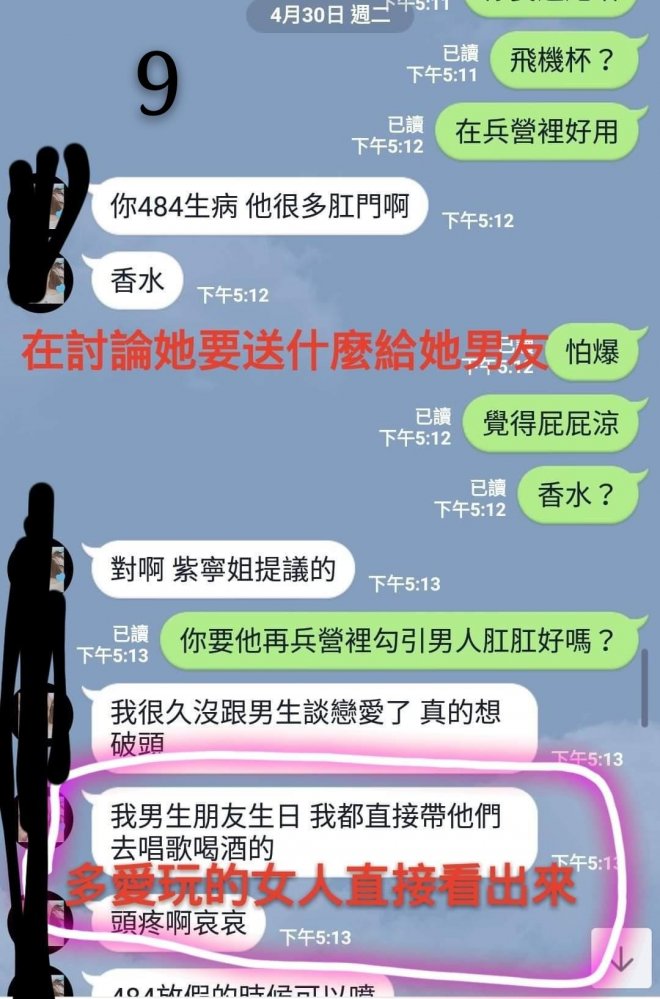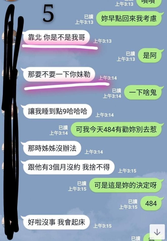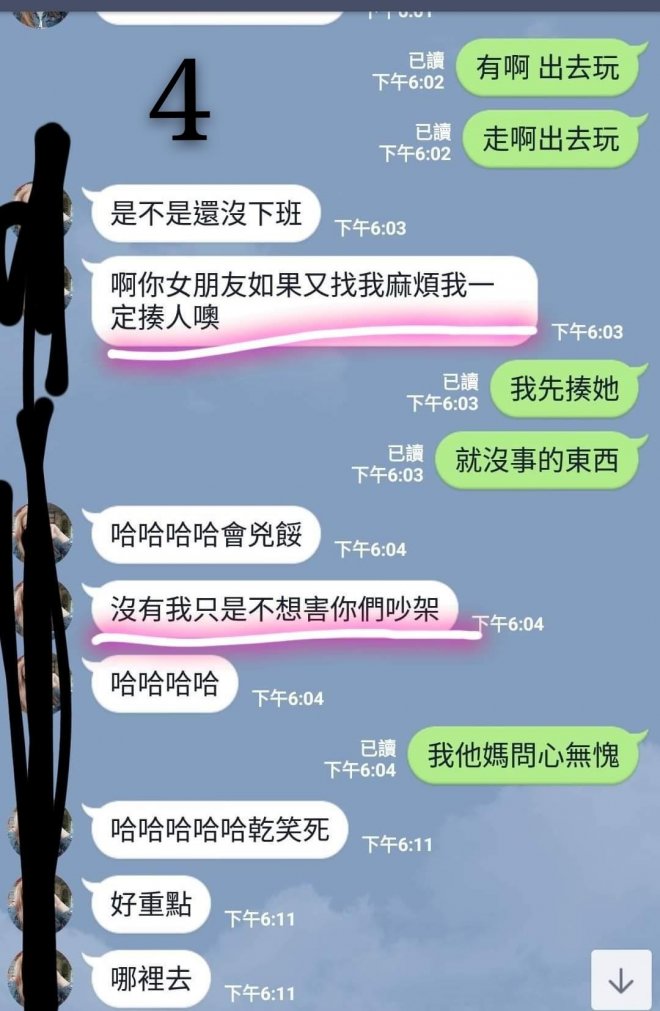 講到一半還烙她男友來,讓她男友在賴裡面罵我,說是我自己沒管好我男友。