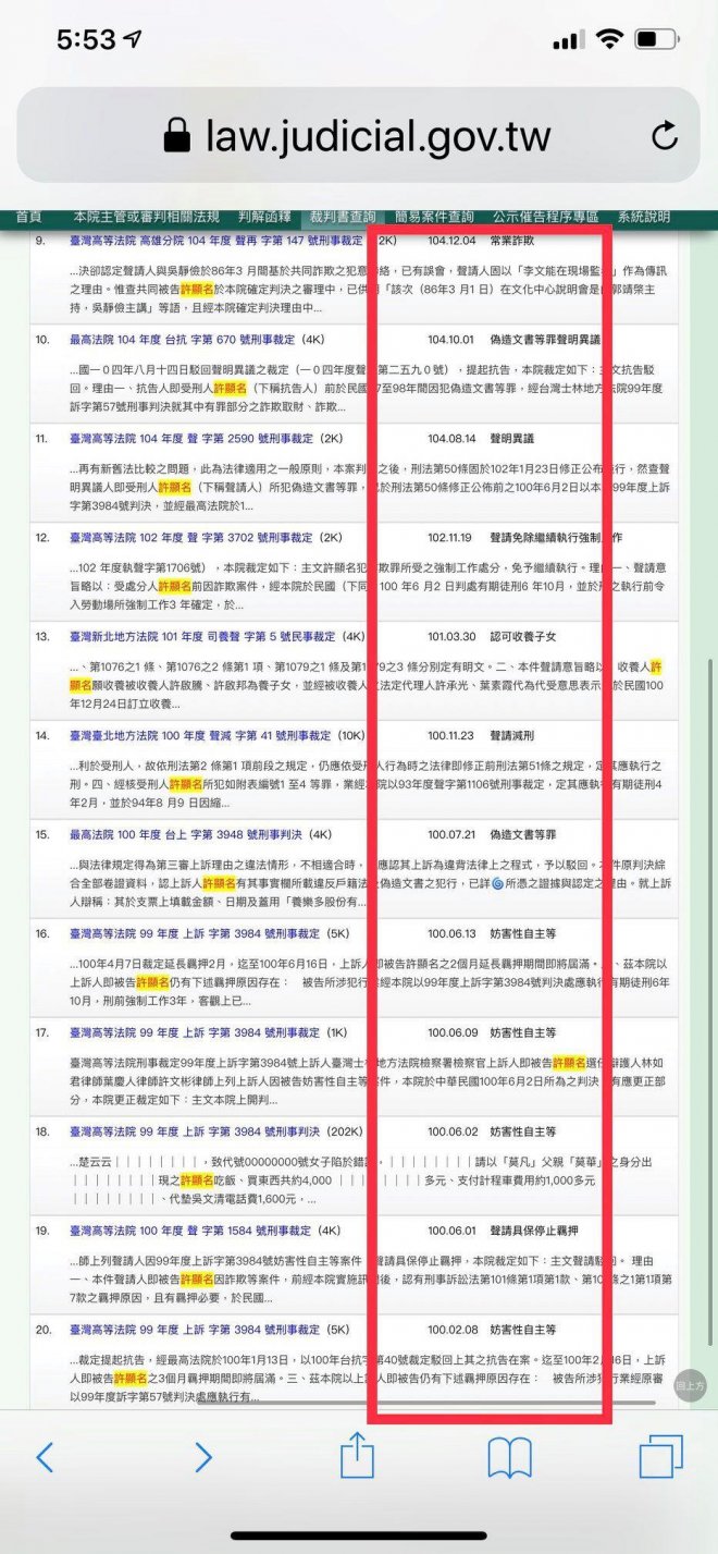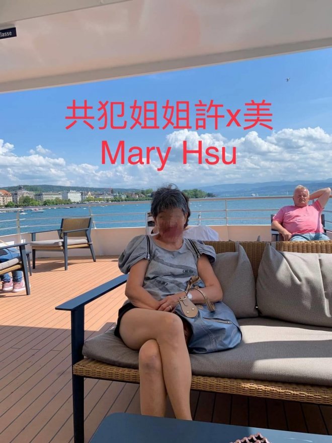 這兩年內,許*名不僅男人女人都騙,而讓他有拭無恐的,就是他有一個共犯結構的親姐姐,他姐姐都快70幾歲了,不但是個破壞人家家庭的小三,演起假裝失明的戲碼就跟許*名一樣超會說謊的!