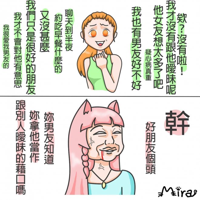 然後事後再跟我男友抱怨我,講的好像她多乖多無辜,都我無理取鬧?