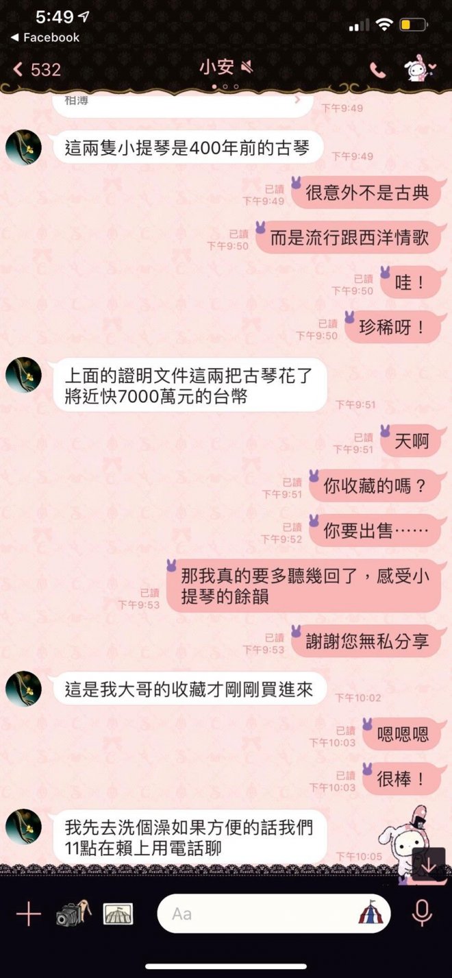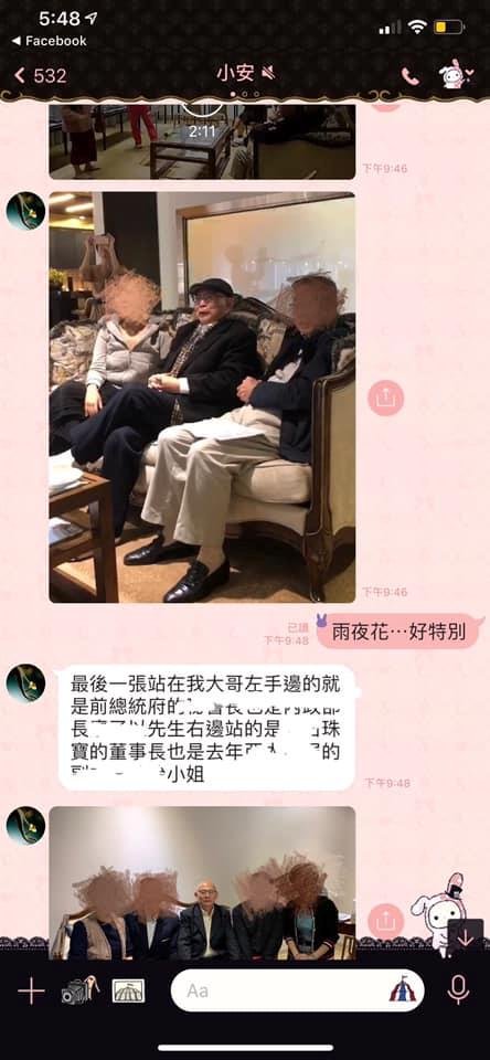 然後就會發一些大哥跟台灣一些名人的合照 ; 例如:台灣政府某前部會的廖部長、台灣某珠寶公司董事長、國際知名小提琴演奏家.....等人合照,藉此展示大哥的人脈,甚至會發一些跟馬雲、習近平、川普....等國際名人的合照(我們也是事後才知道這些照片全部都是合成的)在與大哥打拼事業時,曾經遭到歹徒綁票軟禁長達一個月,受到很多酷刑造成心理上的陰影,因此有X功能上的障礙,必須接受X治療.......不治療就會死之類的悲慘人生!!