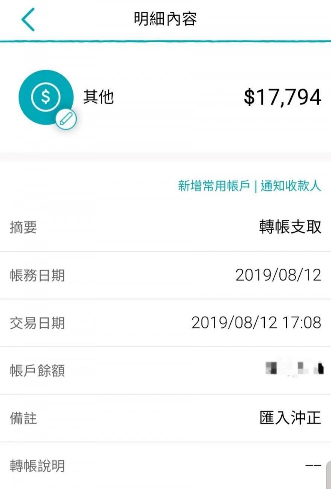 他們發現的時候想說已經太晚了晚上7點多了,所以沒有跟我聯絡就先把錢轉回.......