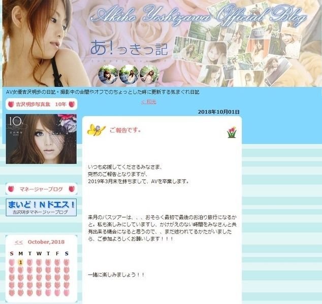 2019年3月「畢業」不過在10月1日凌晨,吉澤明步在個人網誌宣布引退,表示2019年3月就會從AV界「畢業」!吉澤明步多謝大家一直以來的支持,並邀請粉絲參與其最後「感謝祭」。唔少男士包括小編,都大感不捨!