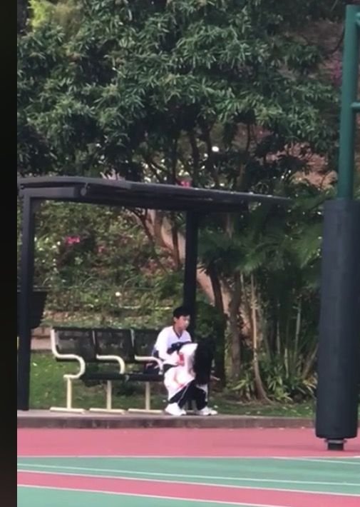 香港土地問題真係好嚴重,一對男女學生疑似光天化日下球場Un下Un下。不過球場係用黎打波架嘛,打友誼波其實都好合理,但後面跑步徑仲有人跑步,你壓力唔會好大架咩?認認真真開個房唔好咩?