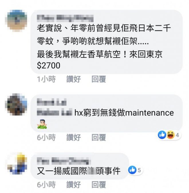 香港航空飛成田3日6零件脫落 網民:甩皮甩骨!影衰香港!