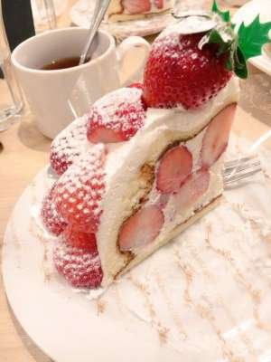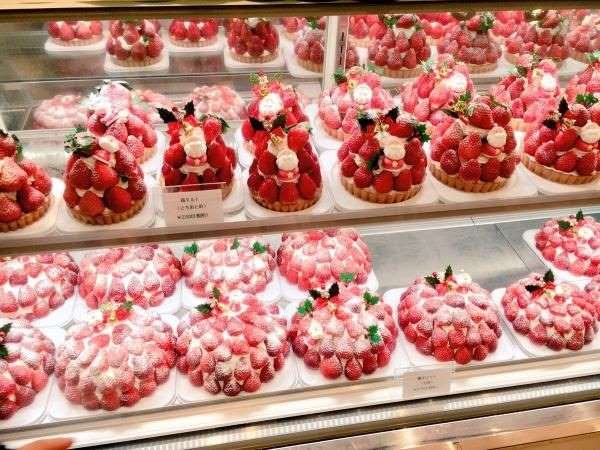 ▼一整排草莓蛋糕,鋪滿的紅色果實讓我們幾乎都看不見下面的蛋糕體。
