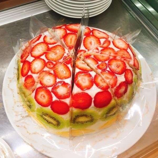 草莓和奇異果蛋糕的橫切面,保證每一口都能嘗到新鮮水果。果實園店內更有另外賣高級水果,水果控絕對會滿足!