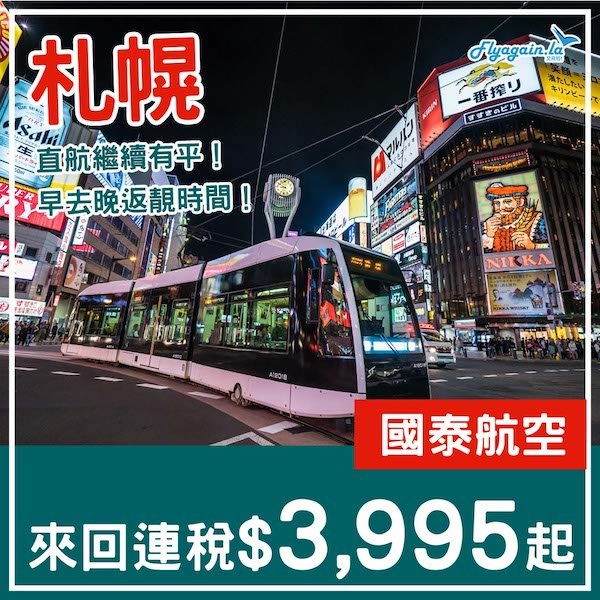 【札幌】四千有找!直航繼續有平!國泰航空來回札幌連稅$3,995起!3至7月指定日子出發