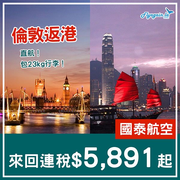 【倫敦返港】搶!直航跌破六千!國泰航空來回連稅$5,891起,包23kg行李,11月30日前出發