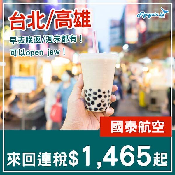 **可以open jaw,高雄入台北走,來回連稅HK$1,696起**