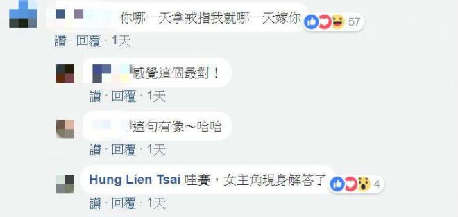 ✪但也有神人網友解答說:「你哪一天拿戒指我就哪一天嫁你。」讓其他人驚呼:「感覺這個最對!」