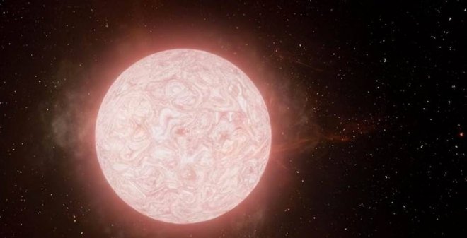 這顆恒星大家應該很熟悉。長期以來,人們認為它是已知體積最大的恒星。盾牌座UY是一顆紅特超巨星,距離地球大約9500光年。盾牌座UY的半徑約為太陽的1708倍,也就是大約11.89億公里,體積是太陽的大約是太陽的50億倍。雖然盾牌座UY的體積非常巨大,但是它的質量卻只有太陽的7~10倍。由此可見它已經膨脹到了多麼可怕的程度。