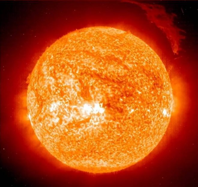 太陽是距離我們最近的恒星。太陽非常的巨大。太陽的半徑為69.6萬公里,是地球半徑的109倍,體積是地球的130萬倍之多。在太陽面前,地球就像是一個芝麻粒兒掉在了一個大西瓜面前。太陽真是大的超乎我們的想象啊!