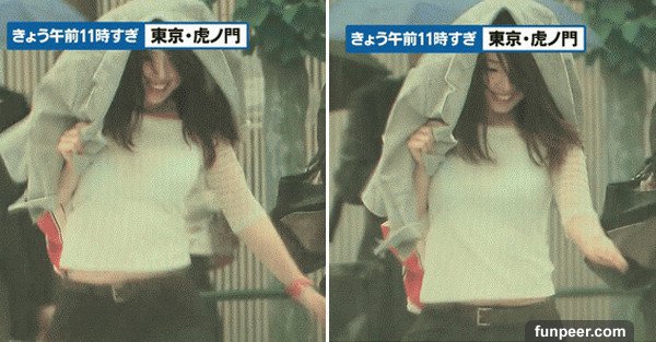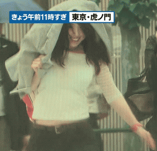 這是在新聞裡面截取到的躲雨的乳搖少女~