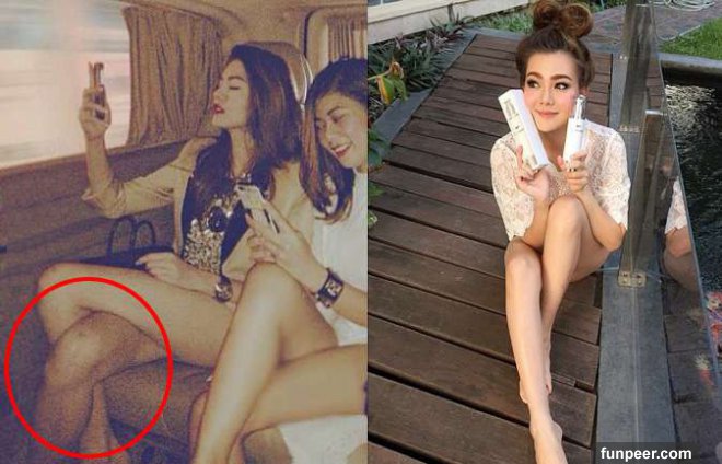 女演員Pim Zaza正伸手摟著她的男朋友,但是她的手顯然沒有這麼大,看起來就像個男人的。