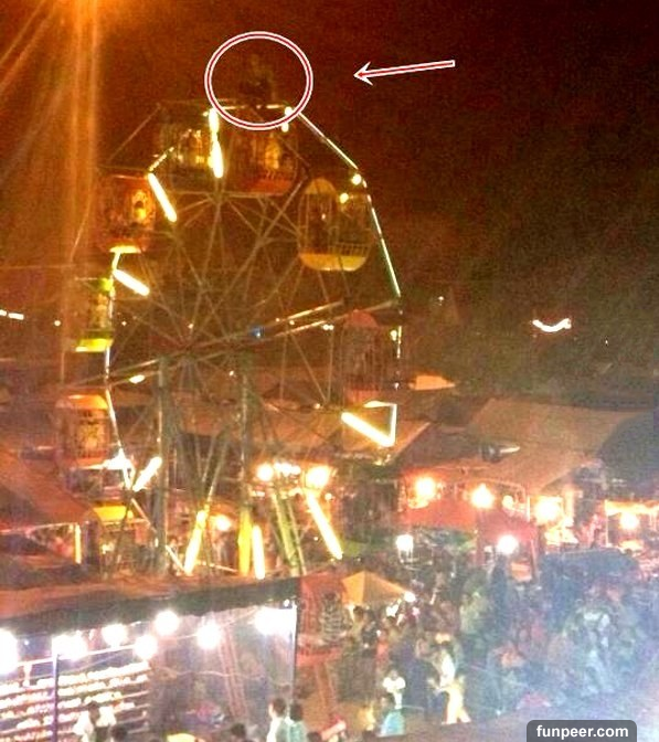 狂歡節時很多人來玩坐摩天輪,但是這個人卻出現在了摩天輪上面。