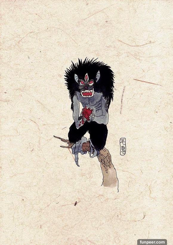 遍體生毛,毛有黑色、紅色、白色多種,這類鬼有著三隻眼睛,喜歡吃人心和獸心。在《通幽記》《夷堅志》《搜神後記》中都有記載這類毛鬼,但是這類毛鬼多被人類擒住,然後燒死,也有逃跑後不再出現的。毛鬼雖然全身長毛,看起來很可怕,但是力量和人是差不多的,毛鬼卻常常到人的家中去傷害人,但是在《搜神後記》中的毛鬼是出現在茶林中的,還送給人柑桔吃,看來毛鬼中也有善有惡。
