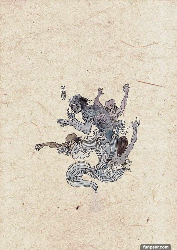 又名落水鬼,水浸鬼、水鬼等,指掉落在水中溺死的鬼。溺鬼一般長著綠色或紅色的眼睛,可以像水獺一類的動物一樣快速的在水中游動,在水中水鬼的力氣會變得很大,有十個成年男子加在一起這麼大的力量,水鬼的皮膚像抹了油一般黏滑,一般像在水中抓住水鬼是不可能的。水鬼總是想把人拉到手中淹死,作爲自己轉生的替身,最怕火和熱的東西。