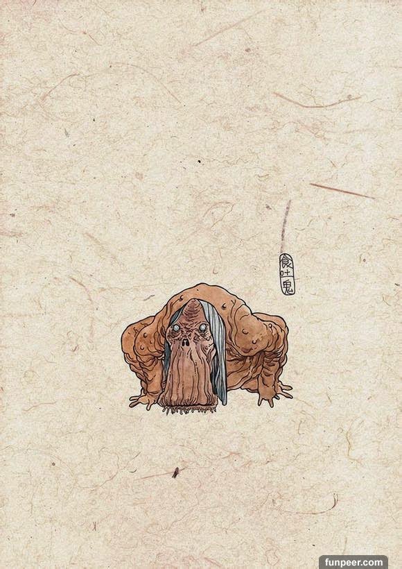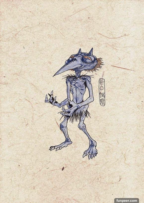 此鬼胃口不小,嗓子眼兒卻只有針孔細,給他再好的山珍美味也咽不下去,只能眼巴巴地聞個香味,靠喝白水度日。此鬼終日饑火中燒,痛苦不堪,悲催得讓人動容。