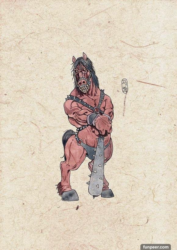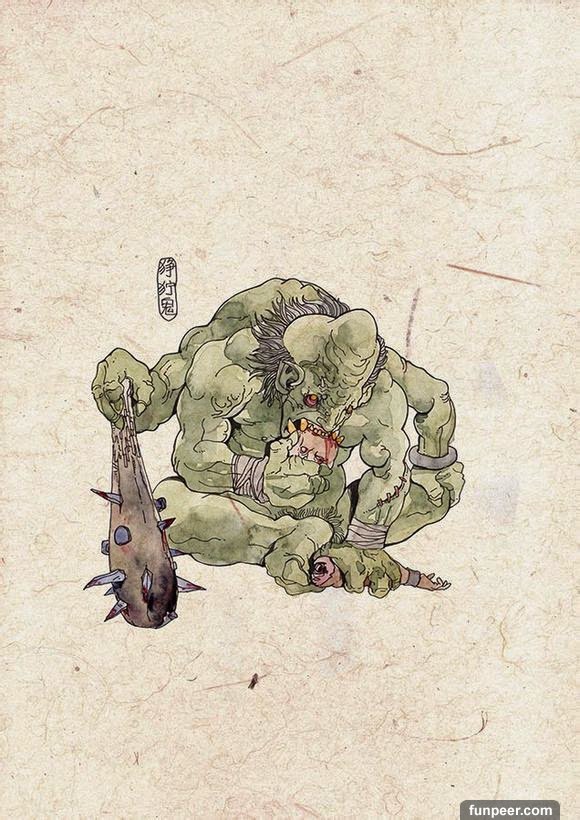 或叫做惡鬼,這類鬼是可以在白天出現的,猙獰鬼的種類很多,有赤面鬼、青面鬼等,總之,猙獰鬼的身體強壯,面目猙獰,一般口中長有獠牙,闊口大眼,有的頭上還長有野獸一樣的角,說他們是鬼,不如說他們像食人族或者野猿人,他們跑的很快,力量很大,常常拿著鑲滿釘子的大棒,吃人和獸的血肉。