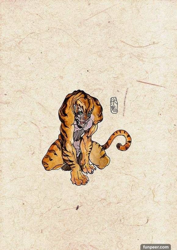 被老虎吃掉的人,他的靈魂會依附在老虎的身上,變成老虎吃人的幫兇,或者幫助老虎吃人的向導,所謂的「爲虎作倀」指的就是這麼回事。倀鬼的樣子和人無異,要想分辨出他們來,其實也是一件很容易的事情,他們一般出沒在深山老林中,男子左手沒有小指頭,而女子右手沒有小指頭,他們的眼睛在半夜是會放出光的。老虎一般不吃喝醉酒的人,所以遇到倀鬼佯裝喝醉酒是一個好辦法,這樣他們就不會把你帶去喂老虎了。
