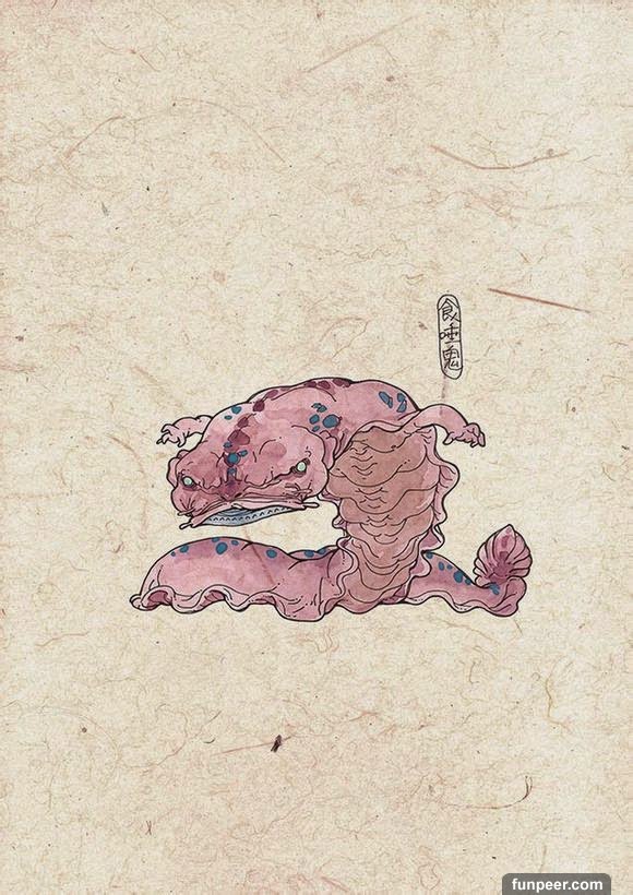 相傳中國古代有一種怪物,很喜歡吃人類的鞋充饑,本性善良,還會報恩,至愛匿藏在洗手間。此怪物皮膚黝黑,身形龐大,有一雙像鳥爪般銳利的手,而且雙眼凹陷、鼻子高而尖、嘴巴像老虎一樣大,除了能說人話外,沒有任何地方和人相同。這種怪物不會傷害人,只會強搶受害人的鞋,然後狼吞虎咽地吃下肚,最可怕的是鞋會流出鮮血,不停慘叫,如果大家遇到此怪物,還是帶它去鞋店!