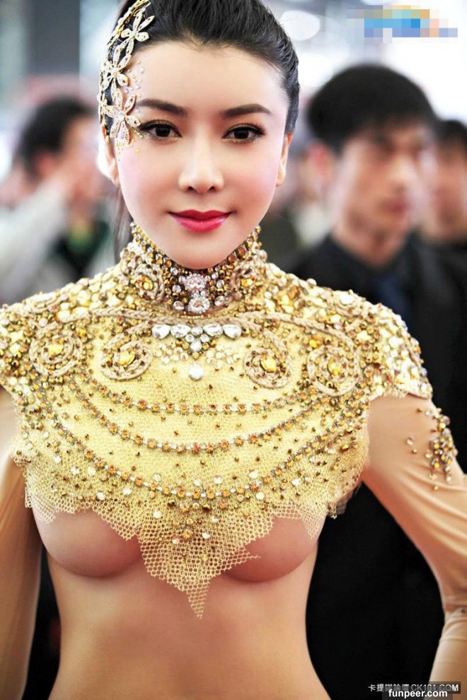 因大膽演出《蛇戒》、《新金瓶梅》成名的中國女星龔玥菲,被稱為新世代「潘金蓮」, 32G豪乳是她的生財工具,無論拍戲還是出席代言活動,胸前雙峰總是可以讓全場男性「G動不已」,她的最新作品3D版《新金瓶梅》日前正式開機,龔玥菲再度飾演女主角潘金蓮,與西門慶公然打野戰,今天最新曝光的劇照中,她雖穿成農婦村姑,但胸襟大開,豪乳呼之欲出。上周五她還在北京為衛浴設備產品代言,身著薄紗在浴缸前妖嬈起舞,胸前僅以亮片遮蓋兩點,配上銷魂表情,畫面超級惹火。
