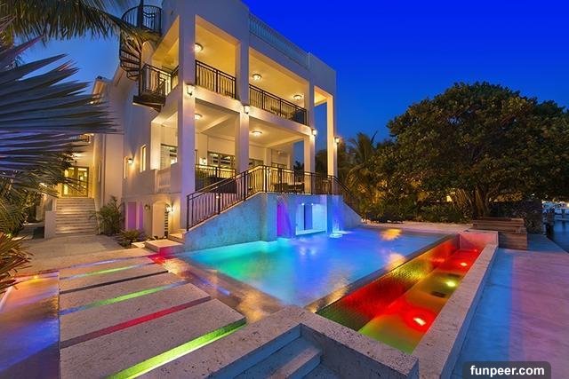 其中包括19間客房,一個主臥室套房,一個二層衣櫃,一間錄音室,兩道保齡球場,電影院,水族館和理髮店。
