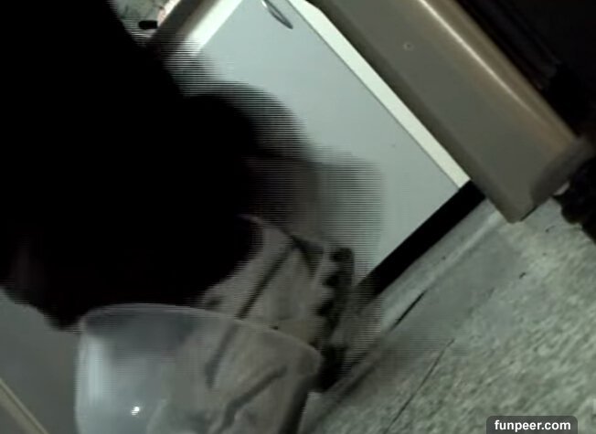 嚇的他立刻落荒而逃!腳還被桶子絆了一下...