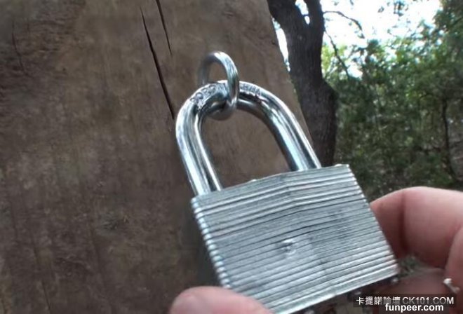 就給大家示範這槍打在鎖頭上,成功開鎖的威力要到哪一種槍哩?