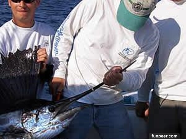這個超扯的故事...發生在2002年,美國有個名叫Bartos的男子為了自己即將走向終點的婚姻而悶悶不樂,他的兩個好基友看了不忍,於是決定帶他出 海釣魚散心~12月28號,三人如期登上了船,準備大幹一場!大海的美好景色讓Bartos心情好了一些,幾個小時之後,Bartos被魚線的異動完全轉 移了注意力!經過一番激烈的戰鬥,Bartos和他的朋友釣到了一條個頭不小的旗魚!