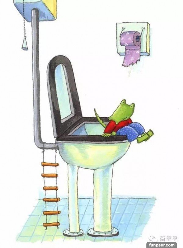 最令鱷魚先生煩惱的是,每一次上廁所嗯嗯的時候,都像玩雜耍一樣,危險又緊張。唉!