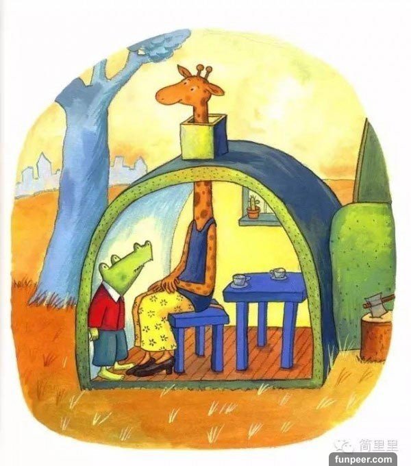 把這樣的故事搬到現實生活中,這樣的兩個人大抵是要離婚的,但鱷魚和長頸鹿沒有分手,他們一起想了個好辦法,解決了那些在生活中遇到的各種難題,最後幸福地生活在一起了。
