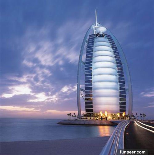 38 迪拜的Burj Al-Arab酒店(burj音譯泊瓷,又稱阿拉伯塔)▲