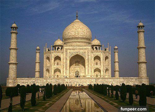 17世紀莫卧兒帝國皇帝沙傑漢為紀念其愛妃慕塔芝瑪,動用了數萬名工人,以寶石鑲飾修建陵寢,圖案之細緻令人叫絕。