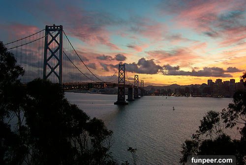 金門橋矗立於金門灣,始建於1933年1月,1937年5月通車。橋長2.7公里,橋塔高224米,橋墩深30米,造價3500萬美元,共使用10萬噸鋼鐵,63萬立方米混凝土。鋼纜重22,000噸,鋼纜所用鋼絲總長達8萬英里,可繞赤道三周。橋設計擺度為27英尺,可承受每小時100英里的風速。金門橋收單向過橋費,每輛車三美元。至1971年已付清造橋本息。對建造該橋貢獻最大的莫過於約瑟夫·斯特勞斯總工程師。經過數十年努力,他衝破重重阻力,才得以籌款建橋。在造橋過程中11名工作人員殉職。至1993年10月,已知的跳橋自殺人數超過1000人。金門橋建成時是世界上最長的弔橋,它的雄偉壯觀是無與倫比的。經歷過1989年10月17日強度8.1級大地震,金門橋仍完好無損。