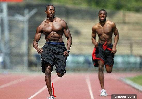 黑人的腳部結構也與其他人種不同,一般人的腳趾中大拇趾最長,黑人則是第二腳趾最長,而且跟骨大,足弓高,加之腳底厚實多肉,使整個腳猶如一雙富有彈性的靴子。由於黑人的腳底肌肉發達,因此,其腳內肌肉強度就大。據科研人員測試,黑人的腳內肌肉強度為150-200公斤、黃種人為100公斤、白種人為50公斤。若以同樣的腿部蹬力作用於地面,黑人的彈力比白人高出3-4倍。另外,黑人的跟鍵長。