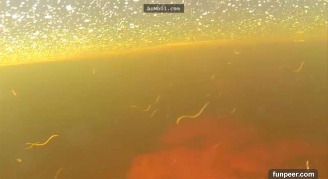 ▼這個位於威斯康星州格林灣濕地的一個小湖,平靜的湖面看似安全,但接下來的畫面絕對讓你作惡夢!