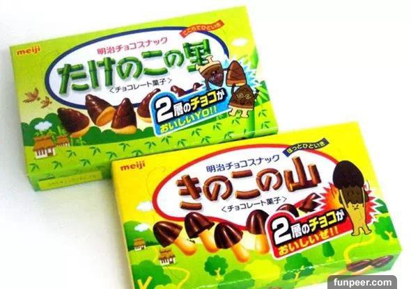 這是明治推出的兩款姊妹產品,算是日本的國民零食了。一款是做成蘑菇的形狀,一款是做成竹筍的形狀,第一眼看去總覺得好萌的樣子。頂部都有牛奶巧克力包裹,餅乾是清新的椒鹽自然味,口感層次分明,鬆脆可口不甜膩。口味更多的日本KitKat巧克力