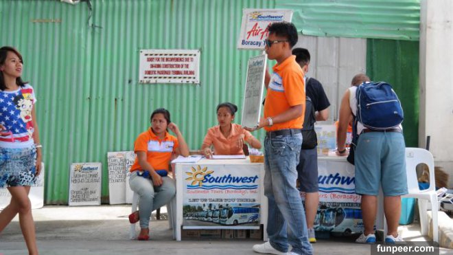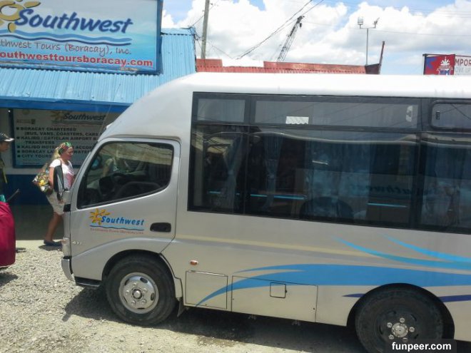你也可以選擇在機場門口外自己坐大巴300比索或搭Van250比索, 抵達Caticlan Jetty PortTerminal之後轉渡船前往Boracay!