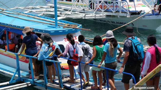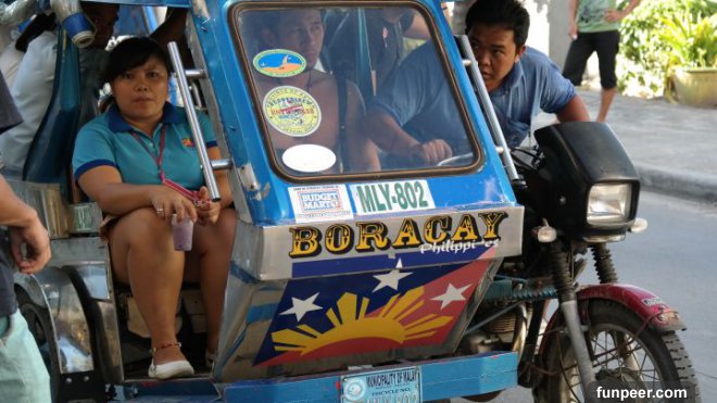 ②島上交通:這島嶼其實並不很大,共分為Station 1,2,3,島上到處有小摩多車出租,租金一趟介於20至30比索(2零吉左右),或是搭島上的三輪車德士(50-150比索視距離而定)。
