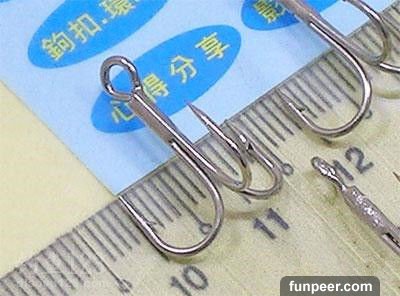 第六:配件使用一隻路亞身上的配件主要是連接環和鉤子,連接環的大小影響到了配鉤在路亞運動時擺盪的角度,而這個角度的大小影響到了魚攻擊路亞時鉤子是否可以在嘴裡。同時配鉤的質量拉力,大小尺寸也非常重要,它會對路亞的泳姿起到影響,我有時看到前後兩隻鉤子可以平掛在肚子底下的路亞時就想笑。