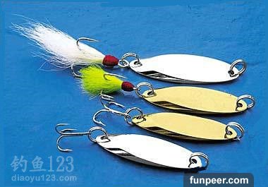 10、鐵板路亞(JIG)簡單談一下鐵板路亞,鐵板路亞是近來興盛的沿海釣法,假餌的長相就如一塊鐵板,為了能夠滿足快速下沉的目的,鐵板本身都有至少300G,400G的重量,在這種反覆從底部上拉餌還必須發揮誘魚技巧,必須花費很大的力氣,作釣的對象魚又多為海中快速移動的魚種因此無論釣獲與否,都是對體力和耐力極限的挑戰,從而衍生出了許多針對鐵板開發的專用釣具。一般主攻對象多為回遊性青物類,如牛港、紅甘、鮪魚等,特性是利用鐵板本身在水底發光效果,搶佔地盤誘發其攻擊慾望。