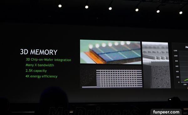 另一招是「3D Memory」,也就是立體堆疊VRAM,以取代目前流行的GDDR5。