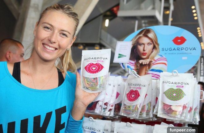在她暫時退出網壇前,她曾想到要改名成Maria Sugarpova (糖果Pova) 來推銷她的糖果公司,這想法雖然非常荒謬,但這位世界上最會賺錢的女性運動選手,絕對是一個能夠吸進百萬元吸金商標。