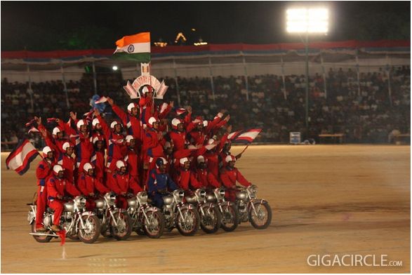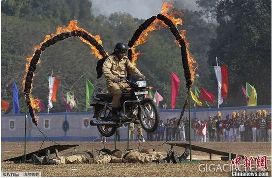 所以說,摩托車特技隊就是印度的部隊文工團,摩托車特技也是他們的傳統表演項目。雖然印度閱兵的确也有不靠譜的地方(比如弄輛卡車在上面裝上一些筆記本電腦,然後幾個人坐在車廂裏做打字狀,就硬說是信息化中樞移動控制平台),但是沒任何人指望摩托車特技隊疊着羅漢去對敵。
