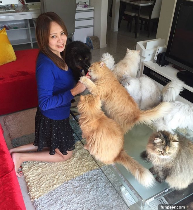 這就是這個大家庭的偉大母親喔~貓媽媽也表示,有人會質疑她養這麼多隻貓,不過她覺得自己現在的生活很快樂,不會為了別人的眼光而改變。