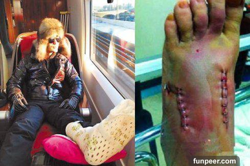 黃曉明:左腳兩根腳趾粉碎性骨折