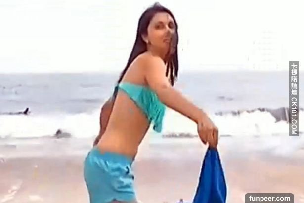 比基尼錄影中被扒掉!女主持狂喬奶「兩跳海」還是走光(圖+影)