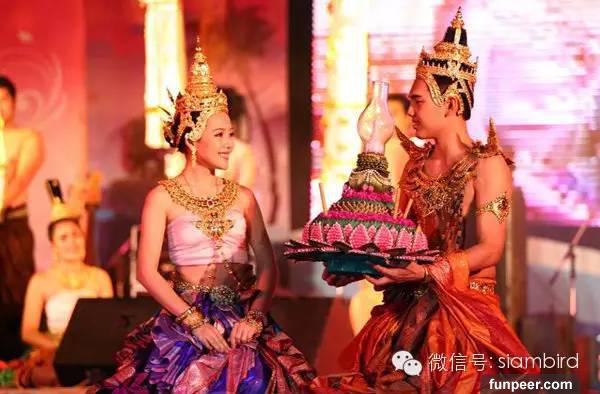 水燈節是泰國一個浪漫的節日,每年的這個時候都會有成雙成對的戀人在充滿燭光和美景的浪漫夜晚來到河邊,一起放水燈許願祝福幸福美好的明天,將插有鮮花、蠟燭香支和硬幣的水燈放到水上漂走,意為讓所有的煩惱順水流走,而讓美好的東西留下。水燈還同時承載了「水是生命之源」的寓意。